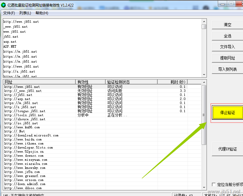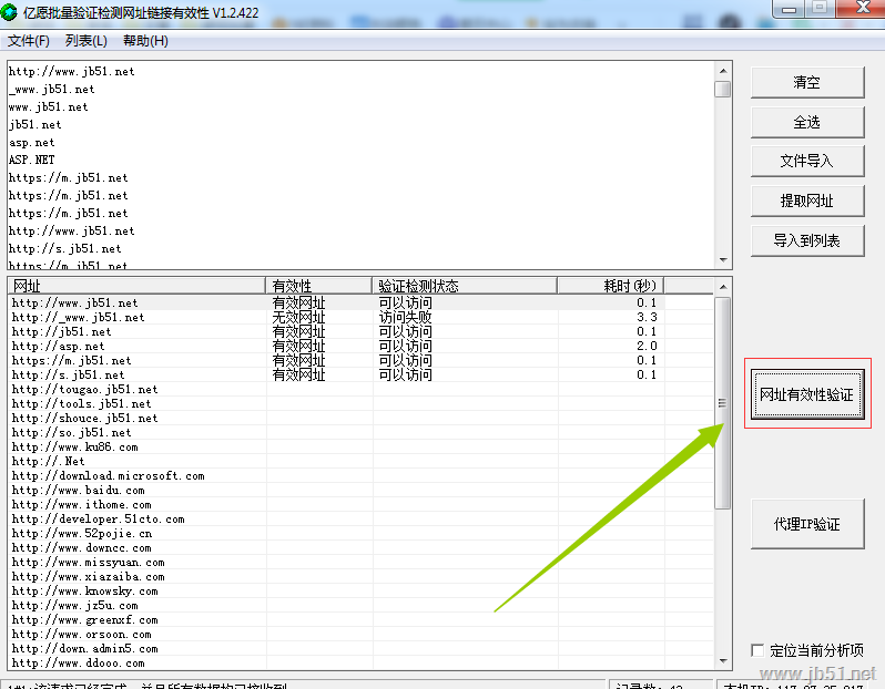 亿愿批量验证检测网址链接有效性是一款十分方便的批量快速分析检测验证网址或者Ip地址链接的有效性的专业工具,也可以验证代理Ip地址的有效性,同时会显示网站速度情况,及代理以后的IP地址;软件采用多线程技术,10个线程同步检测,既保证检测的准确性,也保证快速分析;软件还具备自动提取文本中网址的功能;软件虽小巧玲珑,但是功能强大全面而且专业。