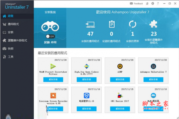 Ashampoo UnInstaller(阿香婆卸载工具)是一款非常优秀的程序卸载反安装工具!Ashampoo UnInstaller 使用了更智能的实时监控技术,监控程序安装中的所有系统更改。