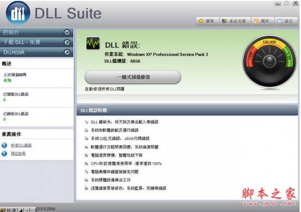 有了DLLSuite ,用鼠标轻松点击下,就可以扫描修复您的Windows DLL文件中的错误并且加快你的机器运行速度。 Windows系统的DLL文件错误频繁发生是一个造成系统缓慢甚至崩溃的重要原因。经常使用DLLSuite识别错误,重新注册DLL文件,您的系统将会更快,更稳定,并不需要升级昂贵的硬件即可提升系统的性能。