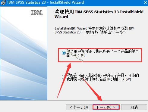 3、选择第一项“单个用户许可证”,点击“下一步”