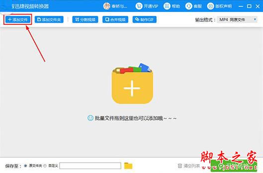 1、首先需要先进入到迅捷视频转换器的主界面,在刚进入到软件中时是不会有视频文件的,需要用户自己手动进行视频文件的添加,直接点击上方的“添加文件”选项进行添加,当然你也可以选择“添加文件夹”添加整个文件夹内的视频,如下图所示:
