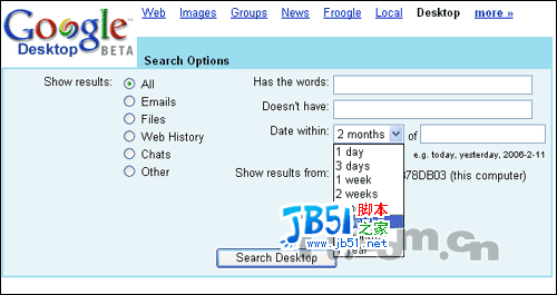在“Desktop Preferences(偏好设置)”中,点击“Gmail and Search Across Computers”链接,在这里可以设置是否搜索GMAIL和远程桌面搜索。