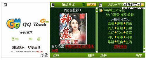 然后打开手机WAP浏览器,输入网址3g.cn,登录3G门户首页并进入书城频道,此时会看到GG BOOK字样,点击进入即可看到介绍和下载链接,下载后可以直接安装使用,非常简单: