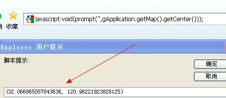javascript:void(prompt('',gApplication.getMap().getCenter()));