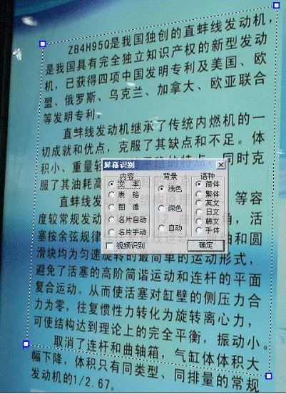 七、选择要截取的图像后,松开鼠标,会弹出如下对话框,如果你要别的图像文字的种类,分别在“语种”里选取“简体、繁体、英文”等,然后点击确定,马上会弹出一个识别结果的文本文档。