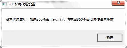 如果发现您需要代理服务器上网,360杀毒会自动测试代理服务器连接,如果连接正常,则会提示您设置成功: