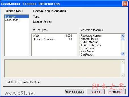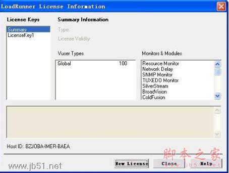 3、安装完成后,系统会自动打开“Loadrunner License Information”窗口: