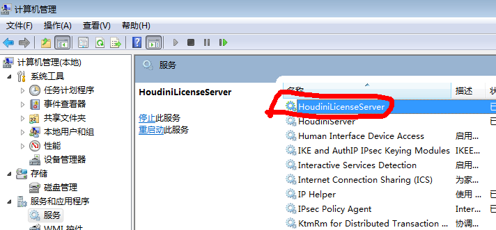 3、这时候,回到第一步的服务当中,把HoudiniLicenseServer这相服务,启动