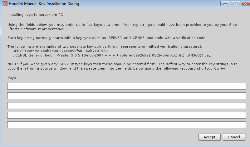 (这里只显示5行,其实要输入15行注册码,也就是输完5行,就要点accept,注册完之后,再输入5行,直到,全部注册完为止)
