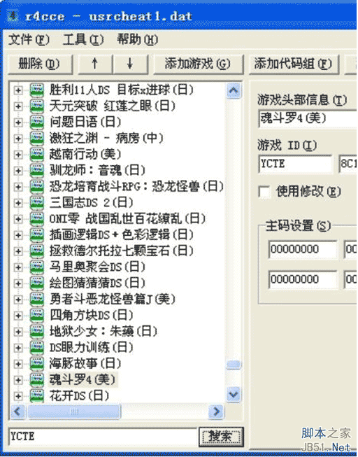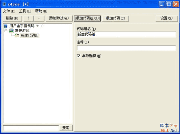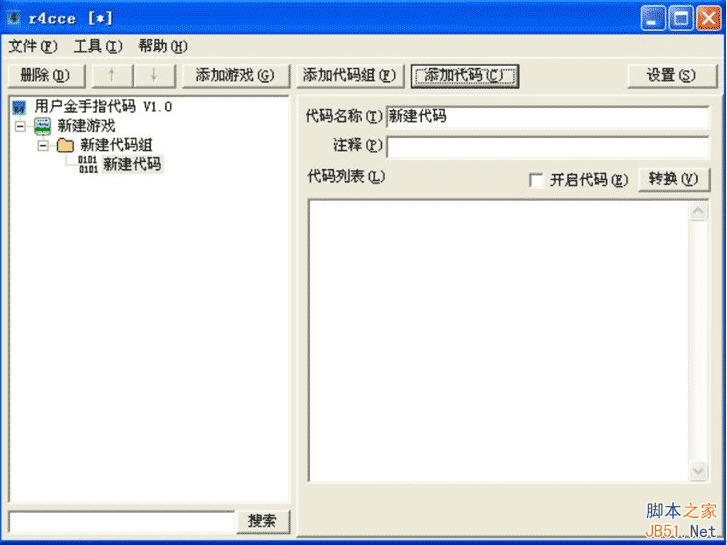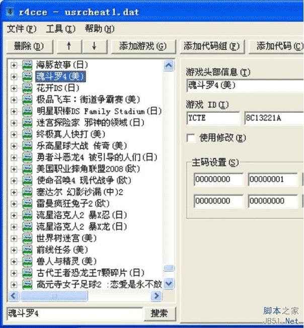 下方的“搜索”可用来思索“游戏名、代码组名、代码、游戏ID”