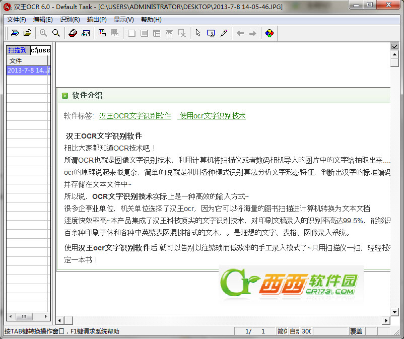 1.汉王OCR文字识别软件 v6.0中文破解版 https://www.jb51.net/softs/55986.html