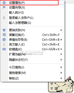 1、首先我们将输入法切换到搜狗,右键搜狗输入法状态栏选择设置属性。