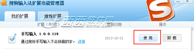 3、这里有我们需要的手写输入的扩展插件,这里如果输入法有默认安装了直接点击使用即可,没有安装的可以点击安装。