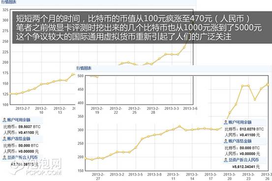 前两年一直稳定在100元人民币左右的比特币,在2013年币值大涨,从100到200再到400甚至500,只不过经历了短短两个月的时间。