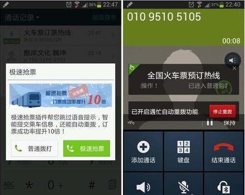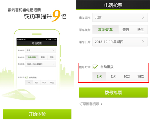 搜狗号码通,在12月30日的新版中也优化电话抢票功能与界面细节,抢票更加流畅。