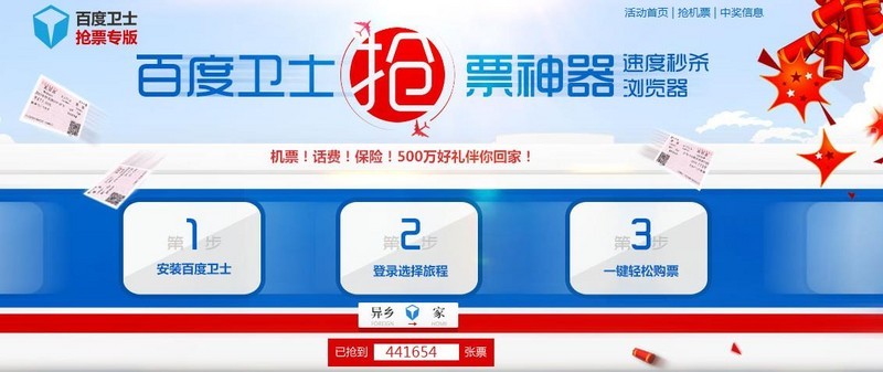 说起百度卫士,很多人多少都了解点,不过12月新版竟然也加入抢票功能,并且还是异常强大的抢票功能,无需输入验证码,自动刷新。人家的口号就是:抢票速度比浏览器和插件类抢票工具快5秒以上!