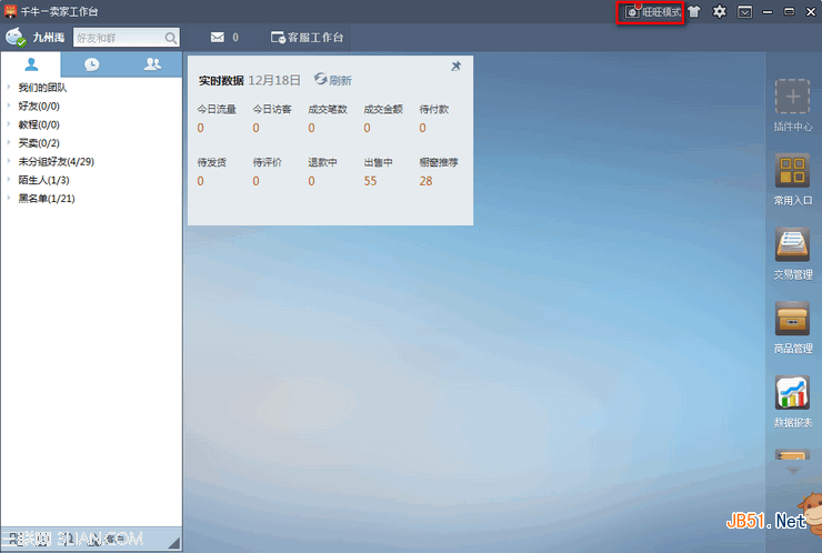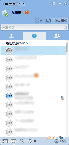 千牛有2种模式,旺旺模式和工作台模式,旺旺模式就是界面和旺旺一样的样子,工作台模式就是类似将所有的功能都集成到一个桌面上。