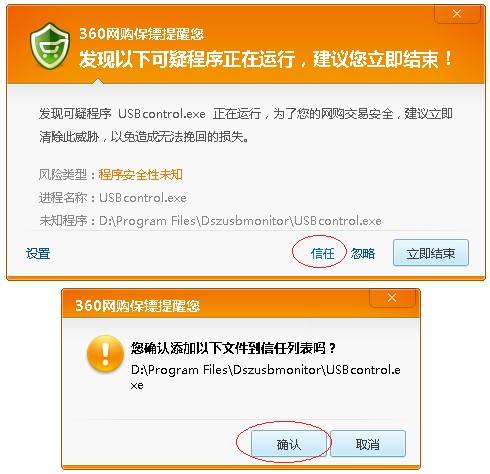 图:发现安全软件试图结束程序时,选择“信任”和“确定”