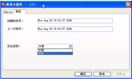 4.在“便笺本属性”对话框,点击高级标签,可以在里面设置安全级别