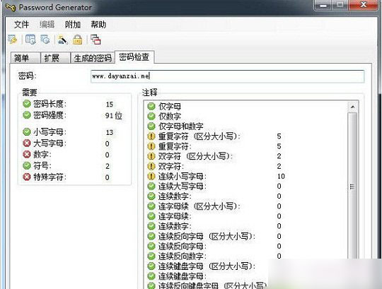 7、密码生成器可以分析密码的安全性,也显示详细信息。