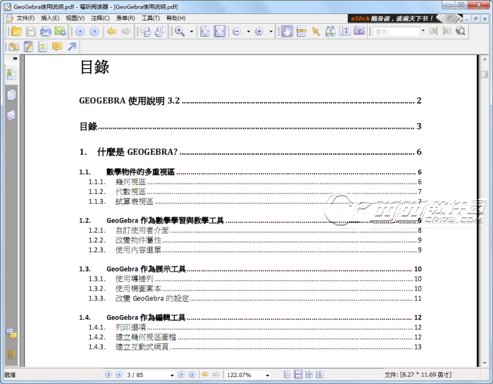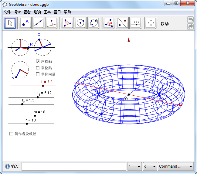 GeoGebra是一款结合“几何”、“代数”与“微积分”的动态数学软件,它是由美国佛罗里达州亚特兰大学的数学教授Markus Hohenwarter所设计的。一方面来说,GeoGebra是一个动态的几何软件,您可以在上面画点、向量、线段、直线、多边形、圆锥曲线,甚至是函数,事后您还可以改变它们的属性;另一方面来说,您也可以直接输入方程和点坐标。所以,GeoGebra也有处理变数的能力(这些变数可以是一个数字、角度、向量或点座标),它也可以对函数作微分与积分,找出方程的根或计算函数的极大极小值。所以GeoGebra同时具有处理代数与几何的功能。