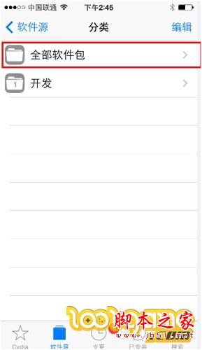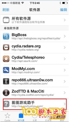 1、首先点击已经越狱的IOS设备上的cydia图标,进入管理界面后,选择软件源(下图红框所示位置);