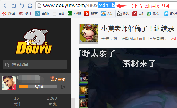 大家可以试试在地址的最后面,也就是主播房间名字的后面加?cdn=lx,就不会那么卡了,效果拔群!