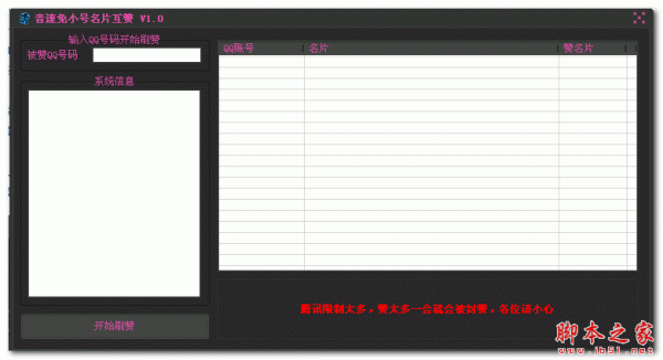 音速免小号名片互赞软件是一款针对QQ名片刷赞器,无需小号。该软件功能强大,能够免小号免费刷赞,无需输入密码的名片刷赞软件,安全无毒,放心使用。