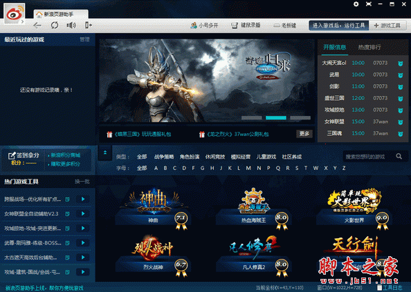 然后正常打开你的新浪页游助手 开心玩三国魂吧