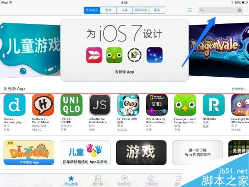 2、打开 App Store 以后,点击右上角的“搜索框”,如图所示