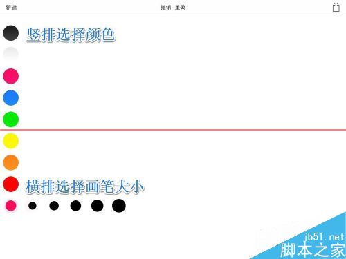 4、在空白图片中点击左下方的“红点”可以选择颜色和画笔大小,如图所示