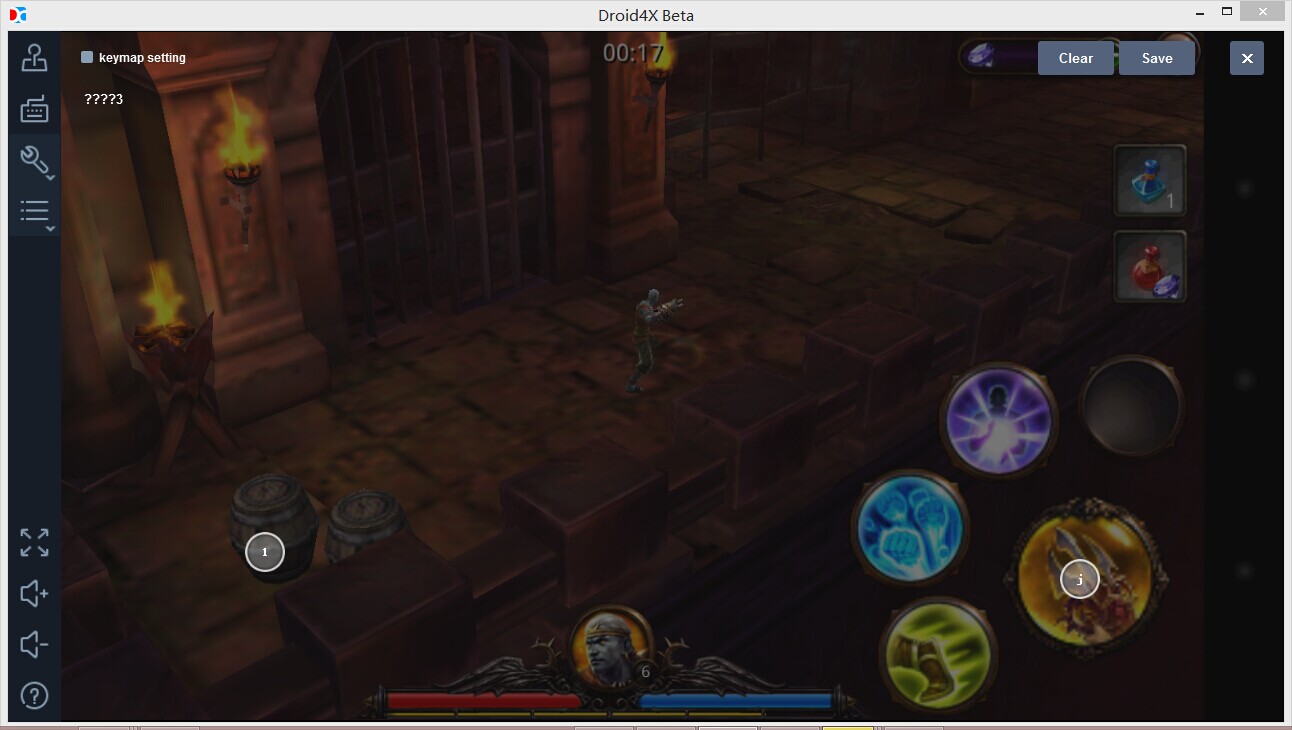 在游戏界面需要点击的键位上设置替代按钮,如图所示,在攻击键位上设置J键,保存设置。就可以直接按J键来攻击了。