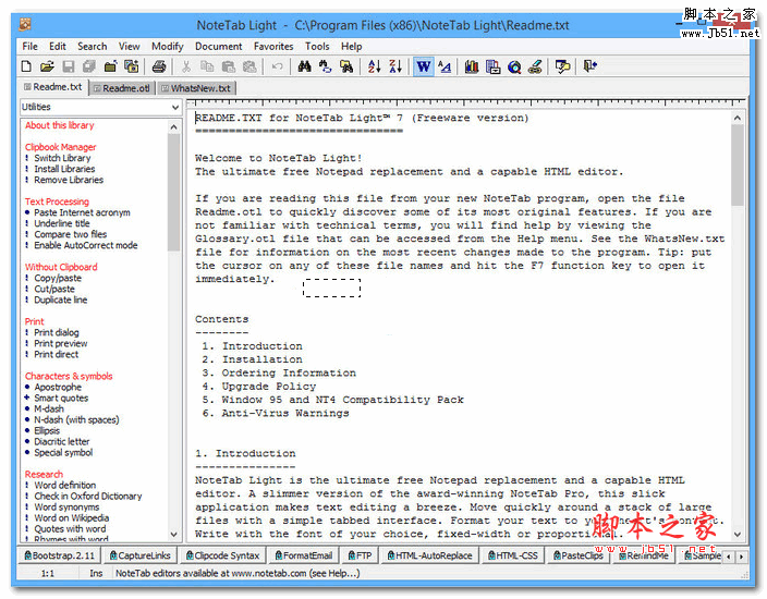 支持dos/windows 和unix 换行格式。可预览打开的文件,多次撤消,记忆搜索替换设置,支持插件等功能。是一款不错的“记事本”替代工具。