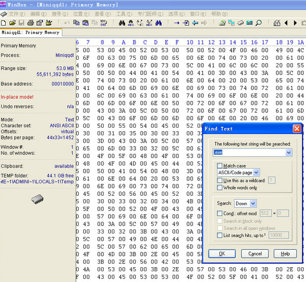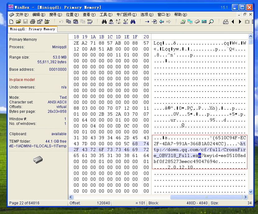我们先用 WinHex 打开 MiniQQDL.exe 这个进程,进程PID是3340