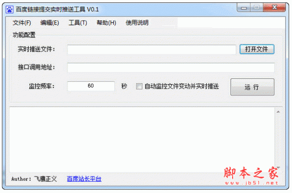 本软件主要帮助大家便捷的实时推送站点更新的URL给百度。同时考虑到了部门同学的需求特别添加了“自动监控文件变化并推送”的功能,启用该功能后程序会按照指定的时间间隔自动去检查对应的txt文件是否有新的变化,如果有新的URL会再次自动提交。