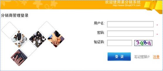 3.单击登录,转到登录页面以后使用分销商账户登录系统,如图: