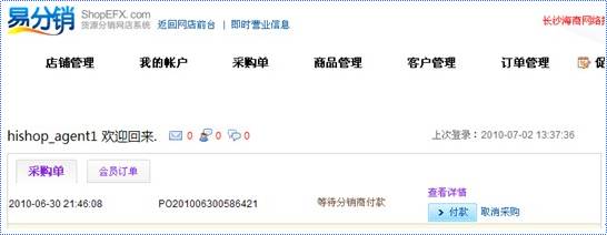 5.登录易分销管理平台,在采购单内查看生成的淘宝订单。如图: