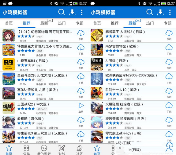 11、在首次启动一种平台的游戏前,小鸡模拟器会提示下载及安装该种平台之对应模拟器(PSP、GBA、SFC、MD、FC、GBC、DC)除外。