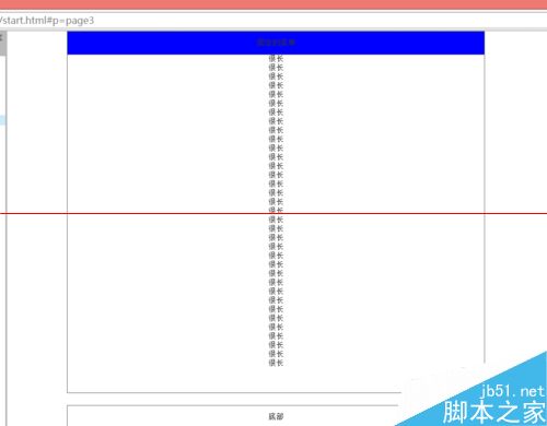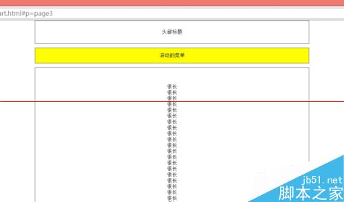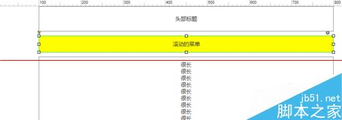 滚动中固定在顶部的标题并非页面上的标题,是单独制作的。复制“标题1”,将复制的标题命名为“标题2”,设置“标题2”x坐标等于“标题1”的x坐标,y坐标等于0。修改“标题2”背景色为蓝色。
