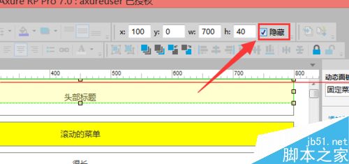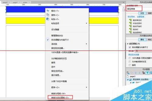 右键单击“标题2”,点击“转换为动态面板”,将动态面板命名为“固定菜单”,在元件属性与样式中点击“固定到浏览器”勾选“固定到浏览器窗口”,完成后隐藏动态面板。