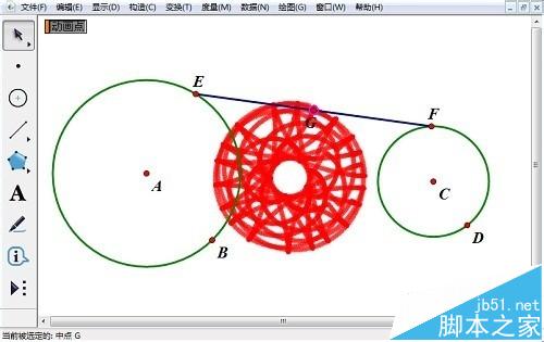 5、点E、F逆向运动所示。不同的线段中点可以绘制出更多美丽的图案。
