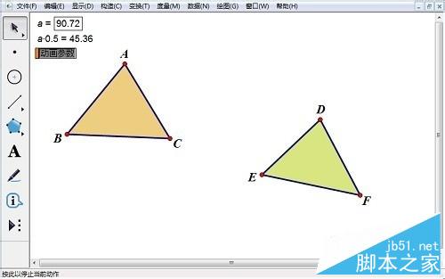 借助几何画板强大的功能不仅可以绘制静态的图形,还可以绘制动态图形,在对图形进行演示时,还可以设置颜色的动画效果。下面就介绍利用几何画板绘制彩色同闪三角形的方法。若想学习更多几何画板教程请访问几何画板中文官网。