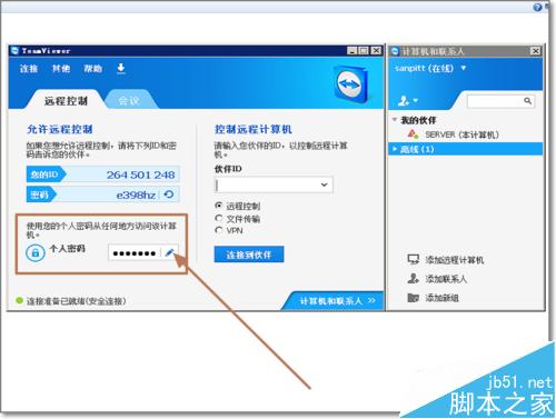 8、另外在主界面如图所示的地方,也可以进行个人密码修改(固定密码),即无人值守访问,也是远程访问服务器或家中电脑的前提,所以本经验在前面的步骤软件就进入了这个设置界面。