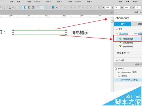 3、为文本框(phonenum)添加:文字改变时 交互用例: