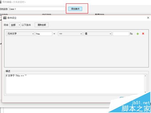 7、再次添加一个case,并设置文本为:输入值有误;