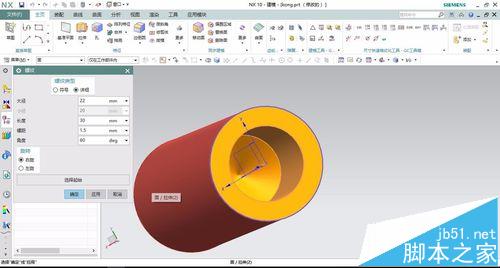 5、最后我们点击螺纹命令,螺纹命令在菜单--插入--设计特征--螺纹,或者命令搜索螺纹,点击孔的内部,设定好参数,即可完成螺纹孔。