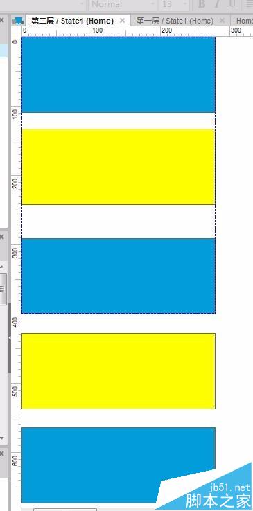 5、进入该动态面板的state1,画一堆不同颜色的方块,注意,最下面的方块一定要超过动态面板默认区域的高度。 如果你有内容,也可以用内容来代替,不影响。