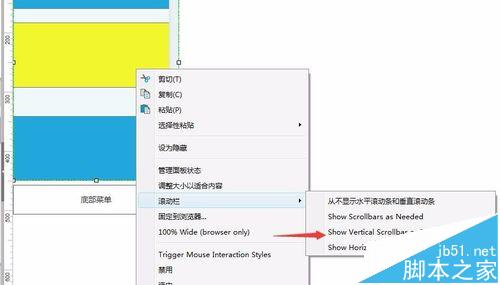 6、画好以后关闭这层,到上一层,也就是第4步的层。在动态面板上右键,选择 滚动栏,有必要显示垂直滑动条