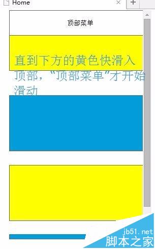 阻尼滑动效果,简单来说,就是页面顶部的菜单在页面开始向上/向下滑动的时候并不跟页面一起运动(如下图),直到页面滑动一定距离后才开始运动。这个效果在很多手机APP或者wap站点中使用。效果很酷,实现却很简单,只需用动态面板多层嵌套即可实现。