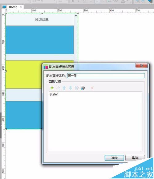 7、关掉这层,到最上面一层,也就是双击左边sitemap的home后打开的页面,在第2步画的动态面板上做同样的滑动条设置操作。